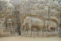 The Arjuna's Penance or Descent of the Ganges rock sculptures are one of the earliest to be created that marked the shift of dominating religion from Buddhism to Hinduism when the Pallavas took over Deccan from the Satavahanas. Most of the rock structures of Mahabalipuram, including this one, were created around 7th century AD during the rule of Narasimhavarman 1 of the Pallava Dynasty - from whose epithet Mamallan, the town got its colloquial name Mamallapuram.
